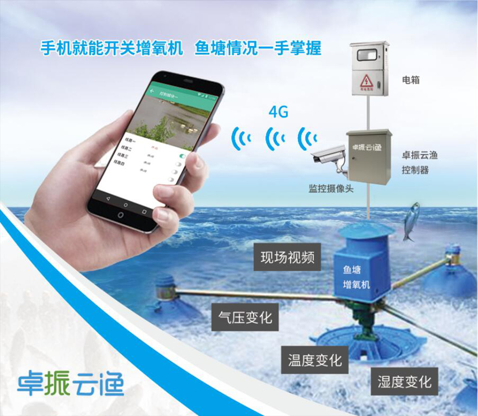 手機(jī)遠(yuǎn)程控制增氧機(jī)的啟停,搭配精準(zhǔn)的環(huán)境監(jiān)控參數(shù),實(shí)現(xiàn)水產(chǎn)養(yǎng)殖的智慧化